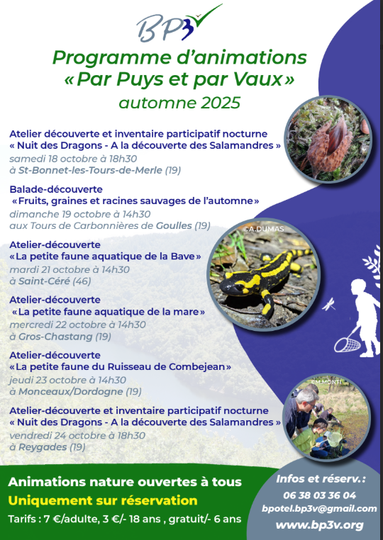 Durée: 2h avec matériel pédagogique fourni. Prévoir bottes ou chaussures usagées.Ouvert à tous, sur réservation