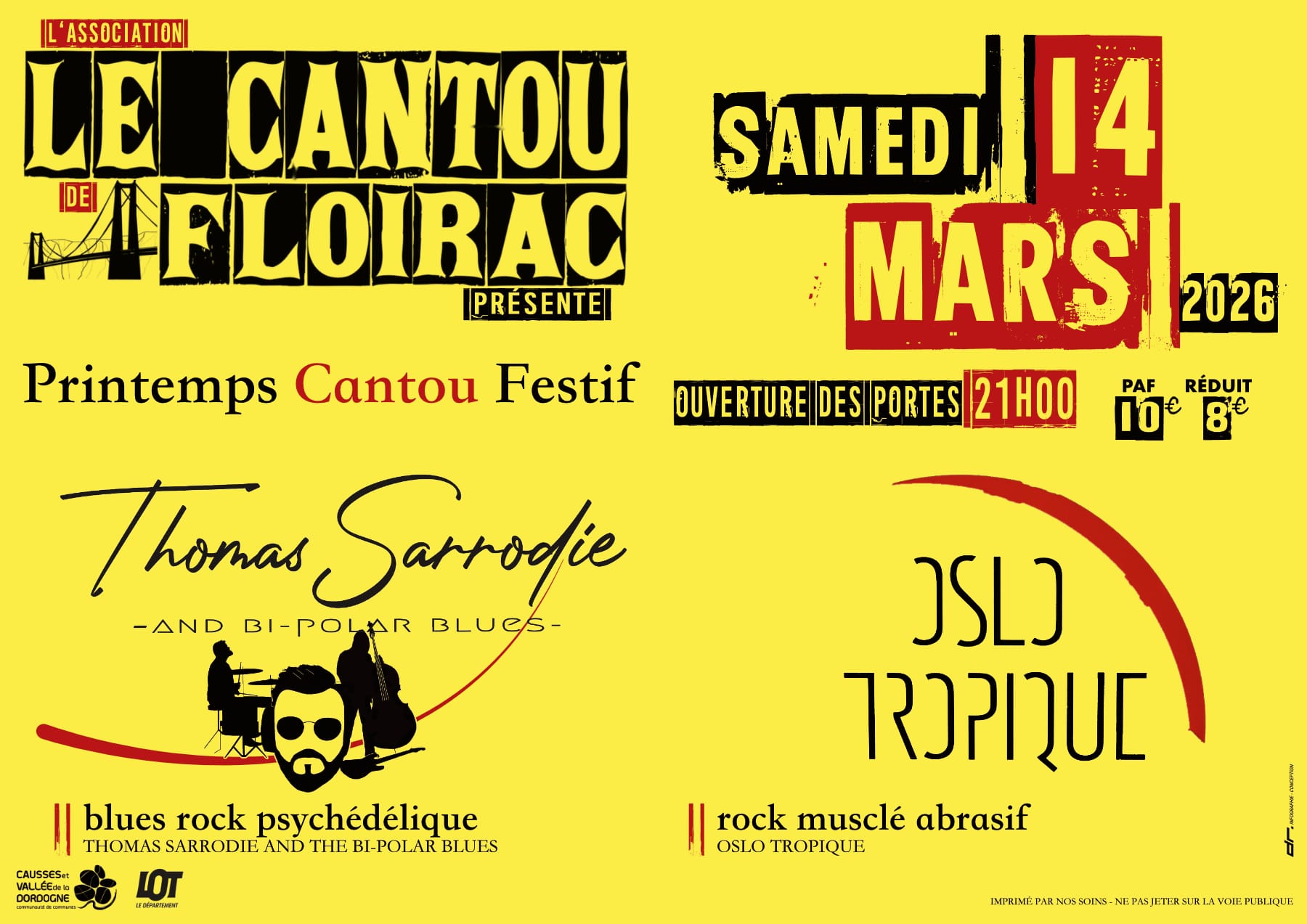 Créé en 2019 Oslo Tropique est né de la rencontre de membres de la scène rock toulousaine et d'un membre des arts de la rue.Après un premier album en 2019 il entame une tournée qui passera par le Cantou!