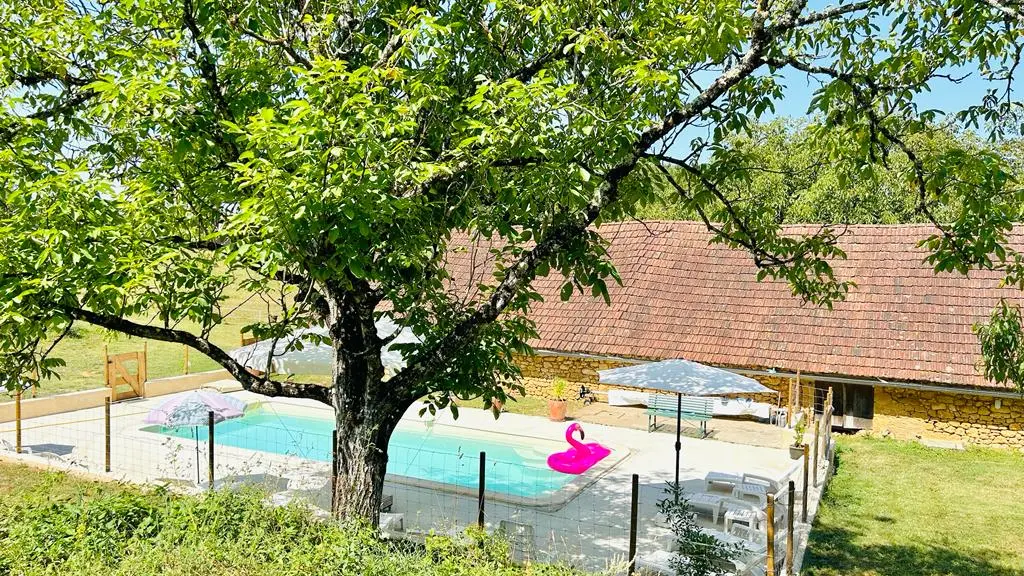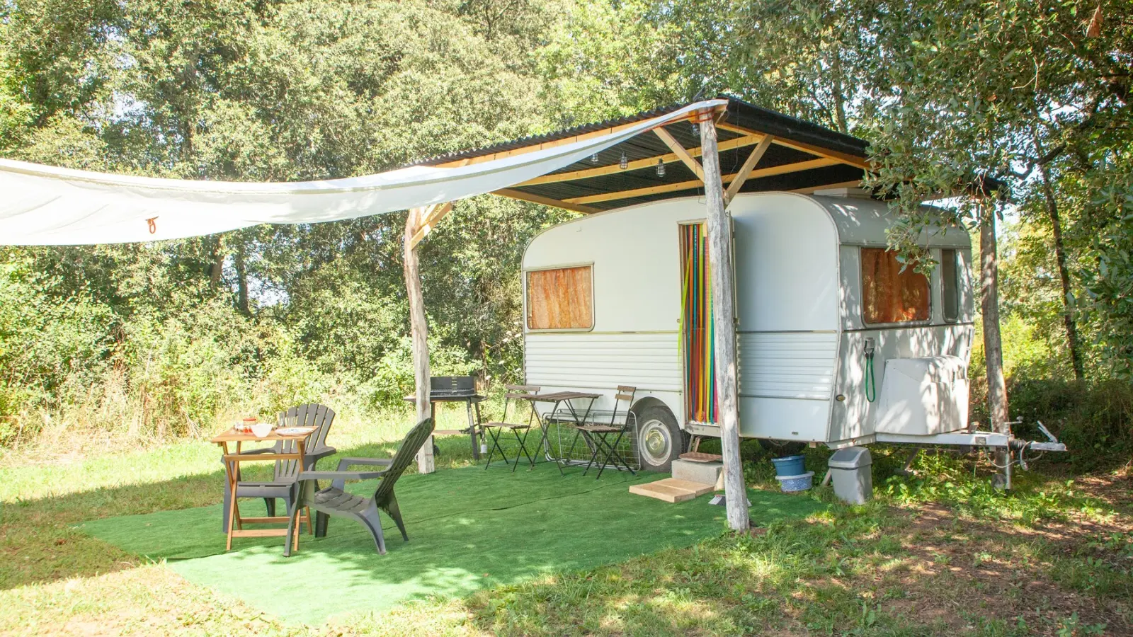Caravane (2 personnes).En pleine campagne, sur un grand terrain de 2 ha, à côté de notre ancienne ferme. Avec chevaux, poneys, poules…. et une belle piscine de 10 x 4 , nettoyé avec sel. Venez profiter du calme, de la nature et de l’espace, mais aussi de la jolie piscine ! La Petite Caravane de 1972 a été rénovée et équipée d’un lit double fixe (1,40×1,90), d’une petite kitchenette. Et à l’extérieur un salon de jardin, un barbecue où vous pourrez vous détendre et profiter d’une vue sur le soleil couchant ou sur un beau ciel étoilé. Beaucoup d’espace sur le terrain pour paresser et jouer au badminton ou au volley par exemple… Et profiter également de la magnifique piscine entièrement clôturée et purifiée au sel !