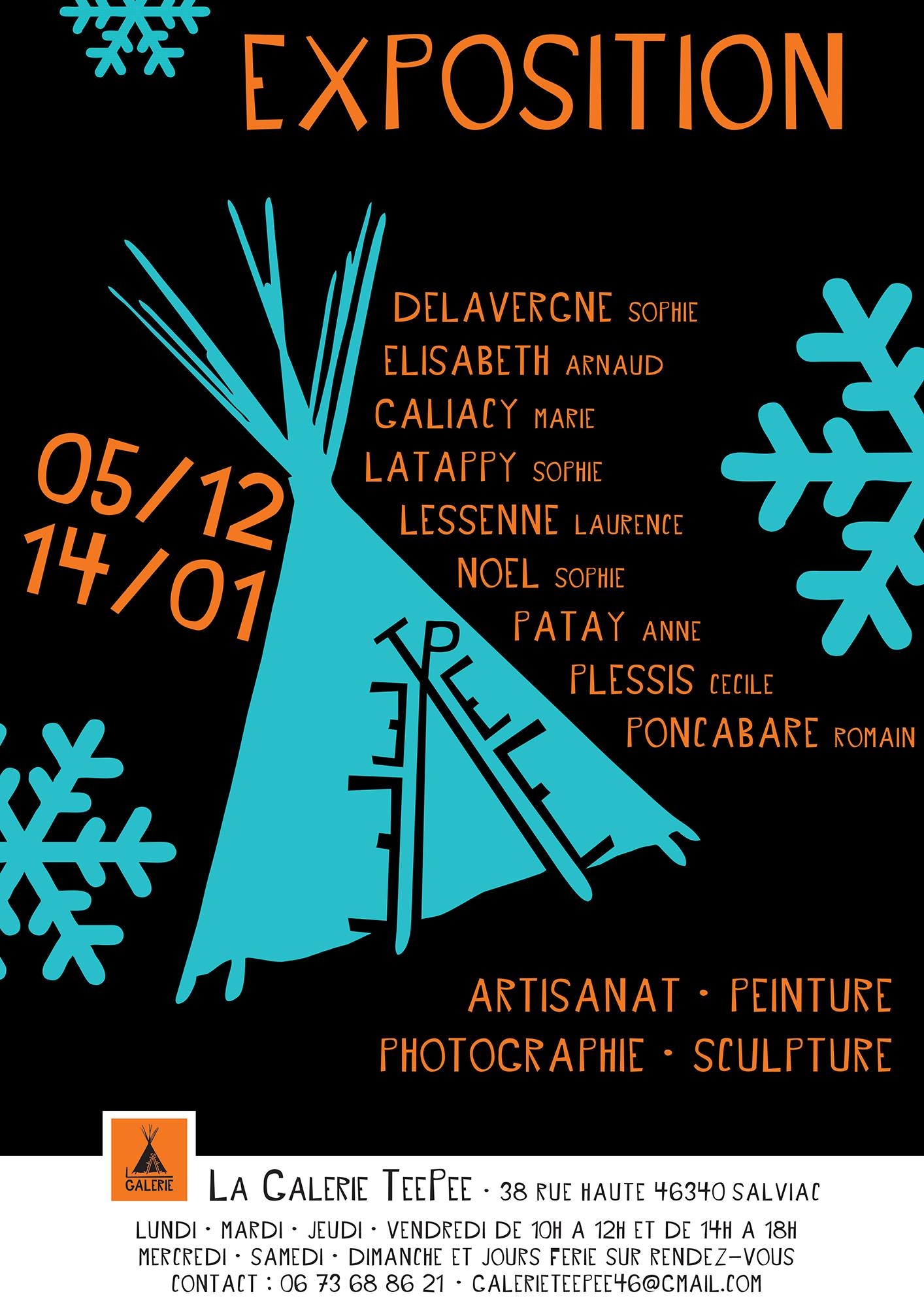 La Galerie TeePee a le plaisir d'accueillir plusieurs artistes pour une exposition d'arts autour de la peinture, de la photographie, de la sculpture mais aussi de l'artisanat.Venez profiter des oeuvres de DELAVERGNE Sophie, ELISABETH Arnaud, GALIACY Marie, LATAPPY Sophie, LESSENNE Laurence, NOEL Sophie, PATAY Anne, PLESSIS Cécile et FONCABARE Romain. Vernissage le vendredi 5 décembre 2025 de 18h à 21hEntrée libre Exposition visible sur RDV en dehors des jours d'ouverture et jours fériés.