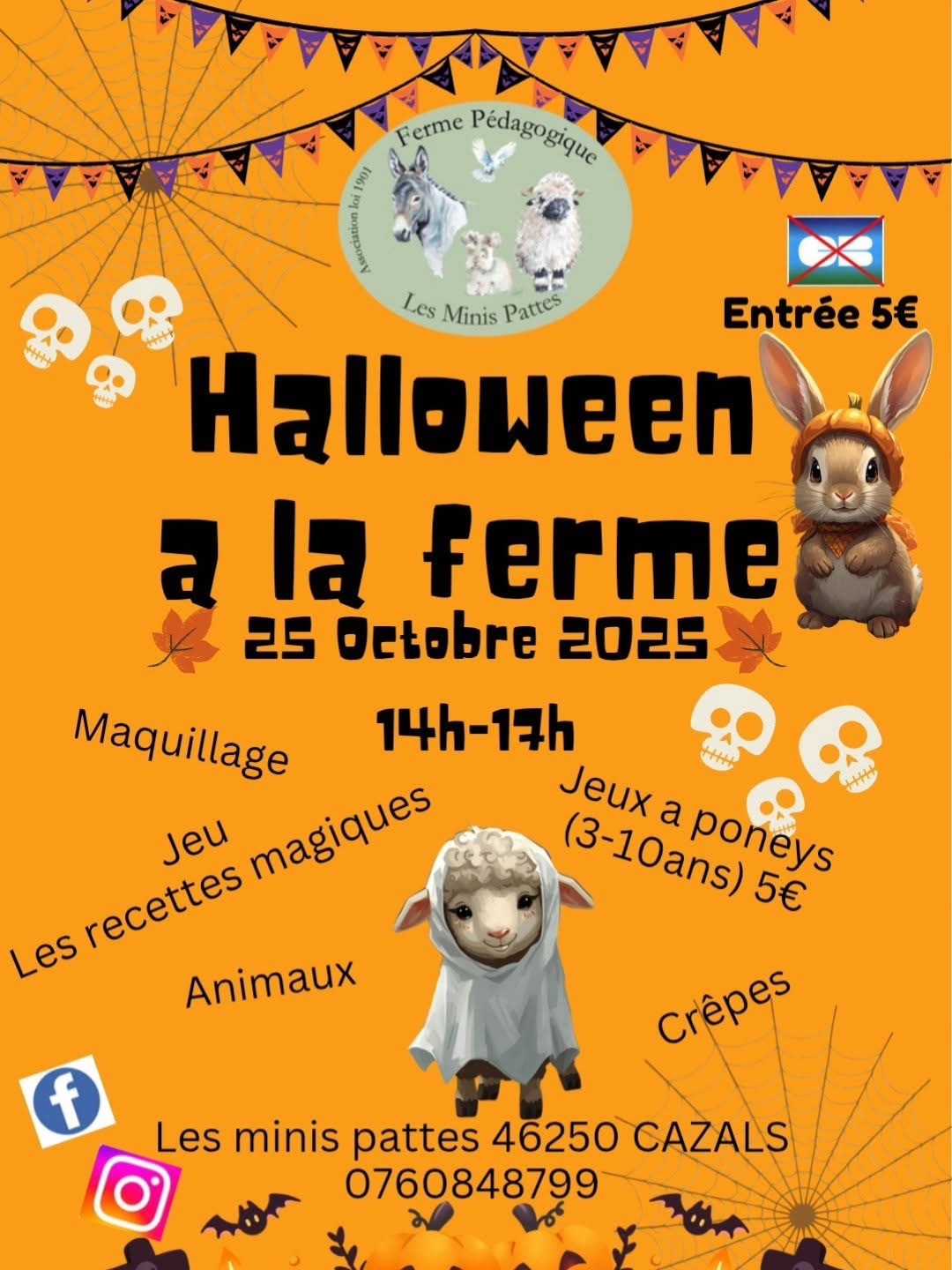 Venez fêter Halloween à la ferme avec une journée spéciale ! Prochaine journée d'ouverture avant l'hiver et ses travaux !Rendez-vous pour un après-midi d'Halloween en compagnie des animaux où jeux à poneys et bonbons vous attendent !Maquillage, jeux, recettes magiques, tours de poney (pour les 3-10 ans avec supplément)Restauration : Crêpes et Buvette.