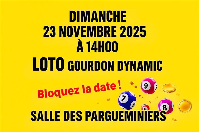 Venez gagner de nombreux lots !Organisé par Gourdon DynamicNombreux bons d'achat et lots de valeurs...Tombola, tickets bar, buvette, patisseries, sandwichs
