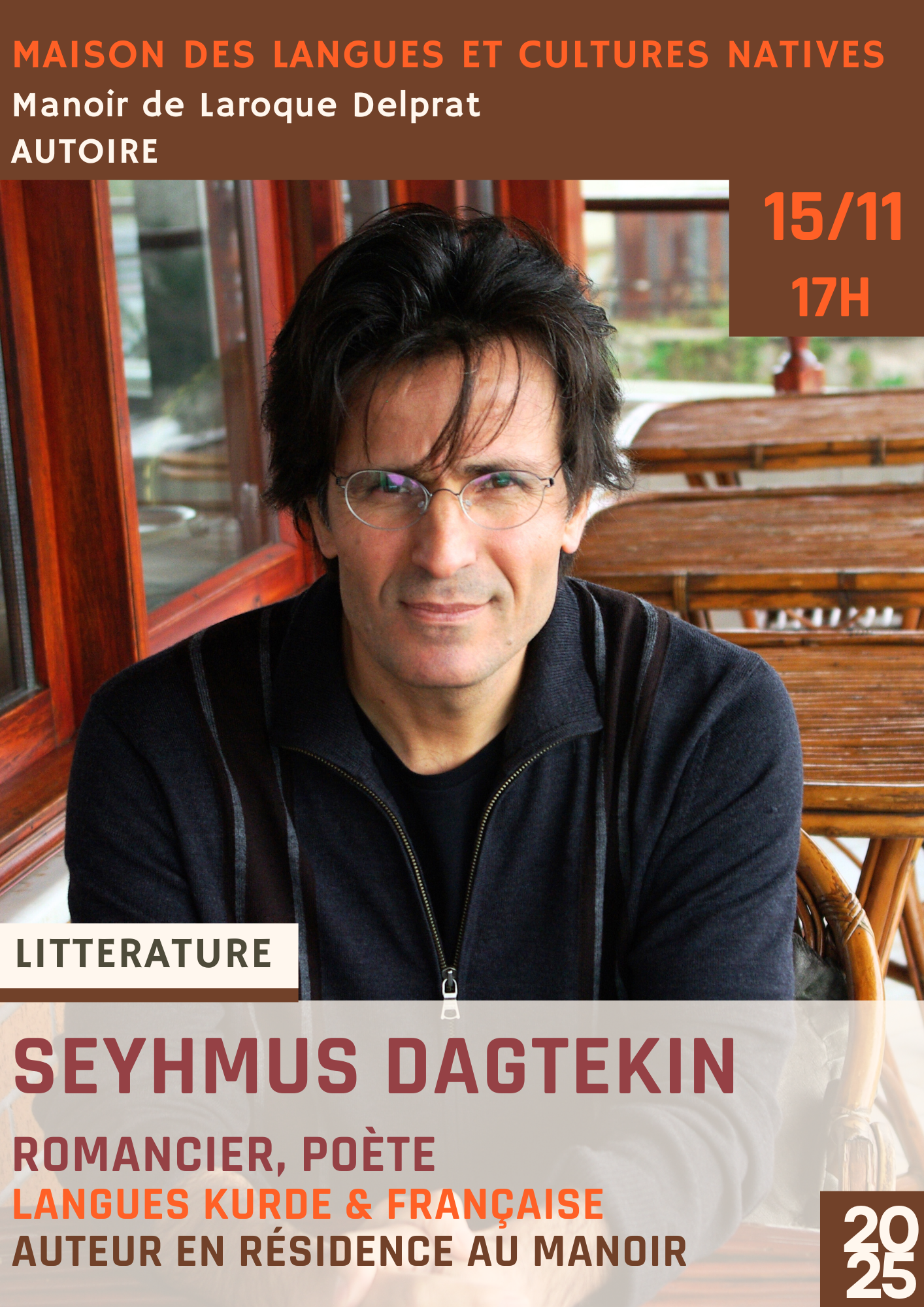 Auteur en résidence au Manoir de Laroque Delprat, dans le cadre de la "Maison des Langues et Cultures Natives", avec le soutien de la DRAC Occitanie.Seyhmus DAGTEKIN est poète et romancier, né à Harun, village dans les montagnes du Kurdistan. Après des études de journalisme à Ankara, il s’installe à Paris en 1987 où il vit depuis.Auteur d’une quinzaine de livres publiés principalement aux éditions Le Castor Astral, il a reçu de nombreux prix prestigieuxTout public. Sur réservation